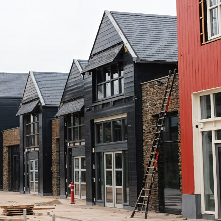 - Cladding with premium materials: metal panels, zinc, copper, steel, slate